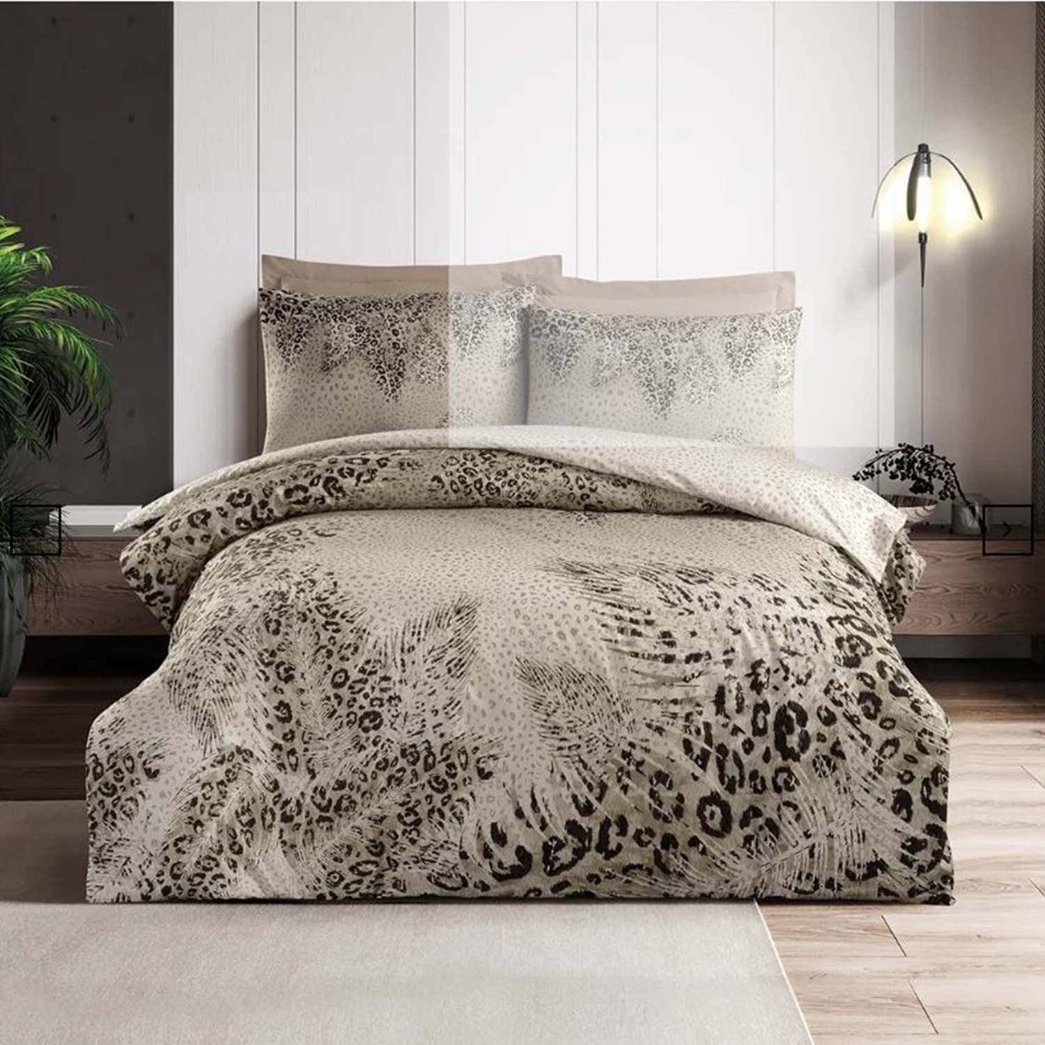 Çift Kişilik Nevresim Takımı, modern tasarımı ve %100 pamuk kumaşıyla dikkat çekiyor. Dijital baskı sayesinde, desenler yüksek kaliteli ve uzun süre taze görünür. Bej rengi, yatak odanızda sade ve şık bir atmosfer yaratırken, yumuşak yapısı rahat bir uyku ortamı sunar. Dayanıklı ve konforlu olan bu set, her mevsime uygun kullanım sağlar.
