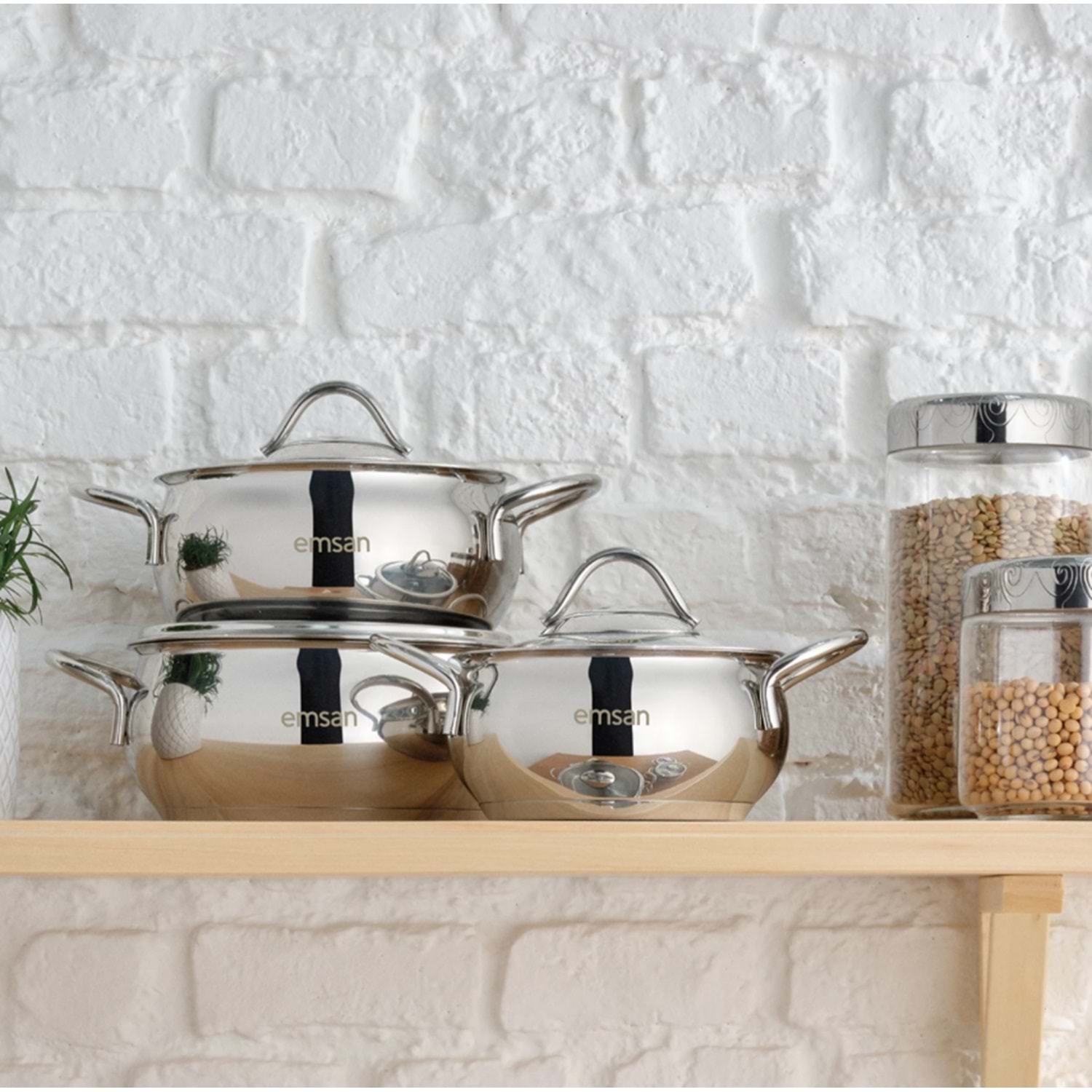 Emsan Cemre İndüksiyon Tabanlı 6 Parça Midi Paslanmaz Çelik Tencere Seti