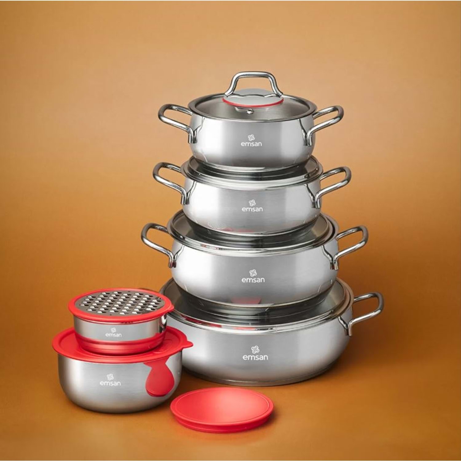 Emsan Emirgan XL 13 Parça Saklama Kaplı Çelik Tencere Seti