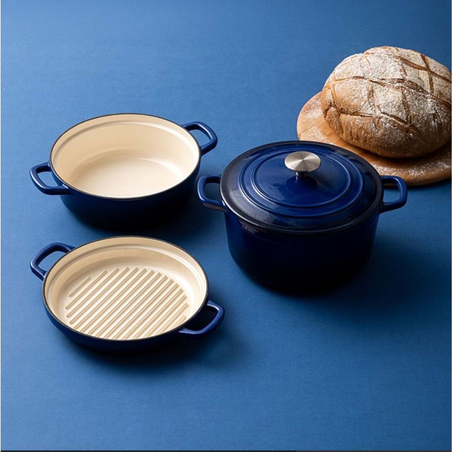 Emsan Fortino Cast Döküm Tencere Seti Lacivert 4 Parça 22 cm