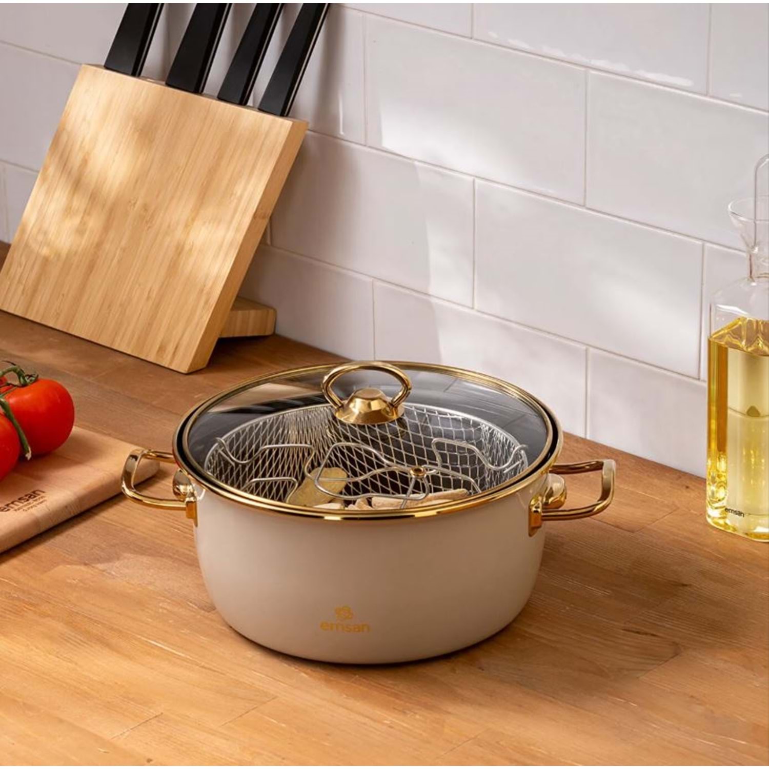 EMSAN RETRO EMAYE KIZARTMA TENCERES, BEJ